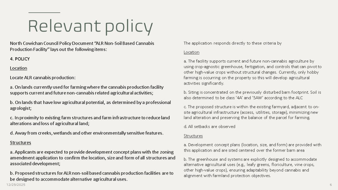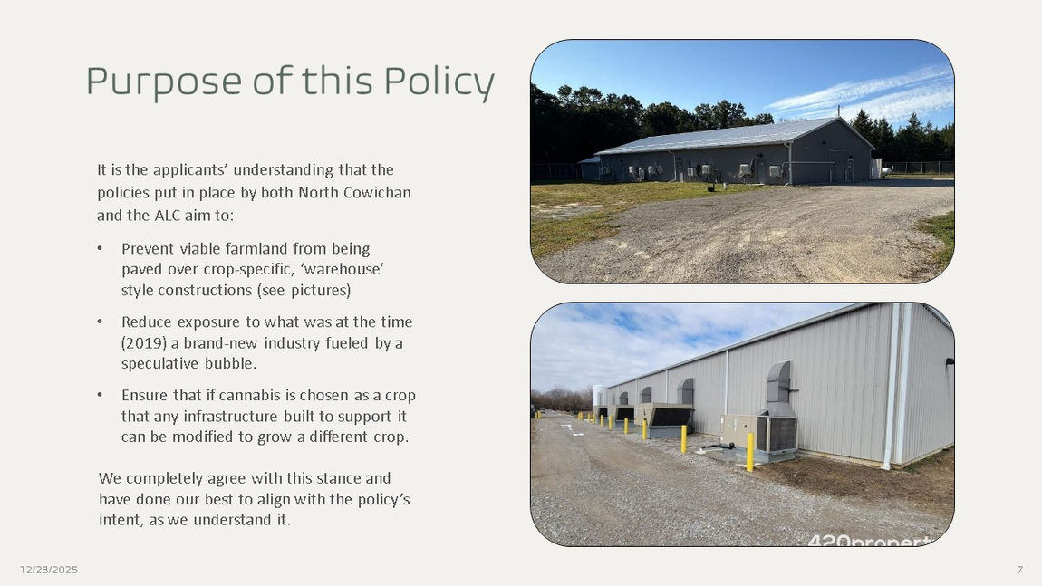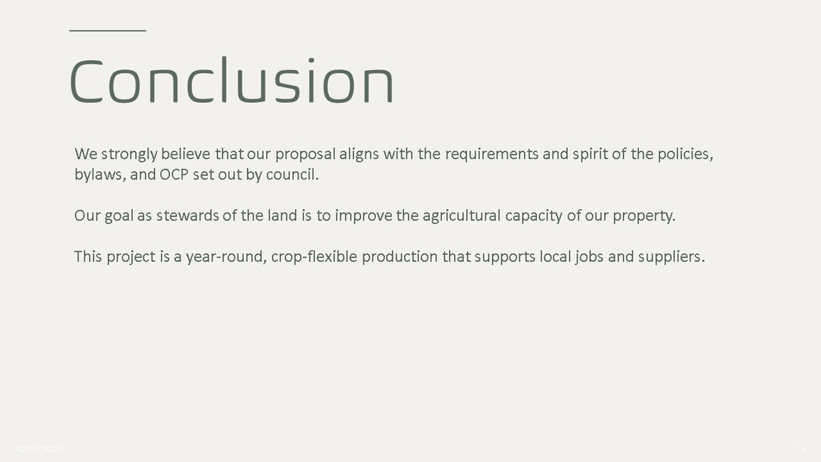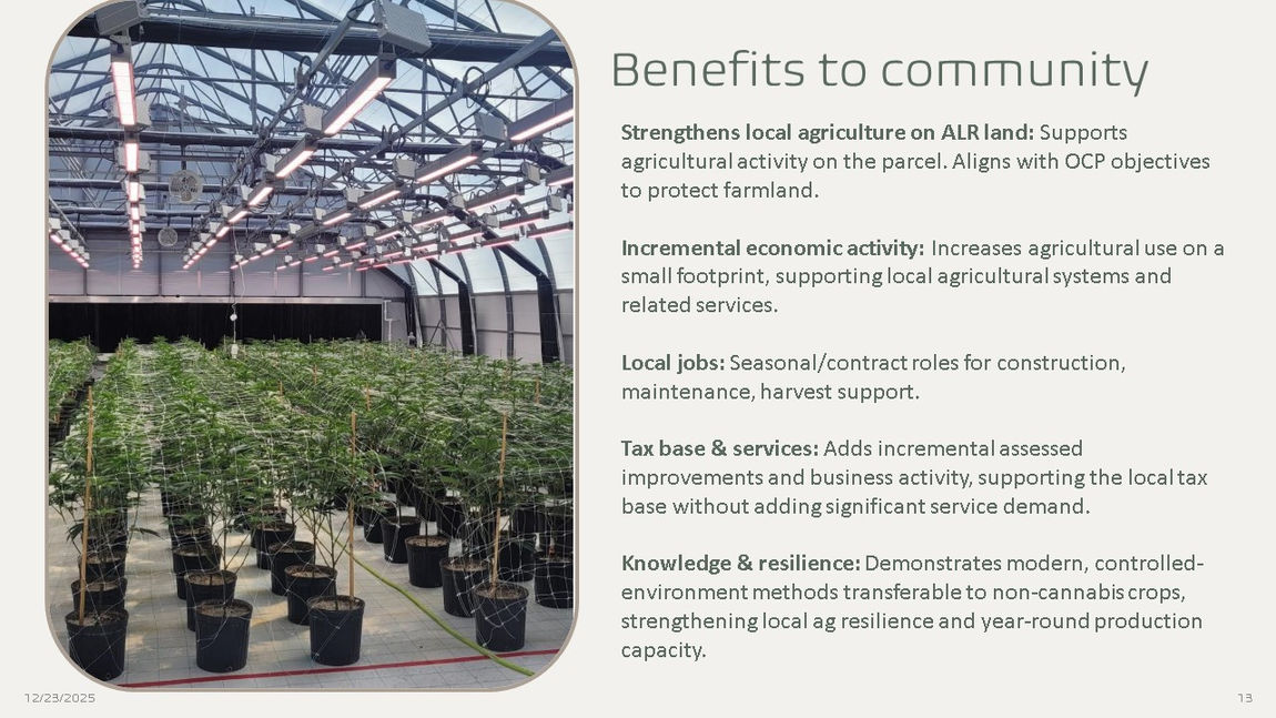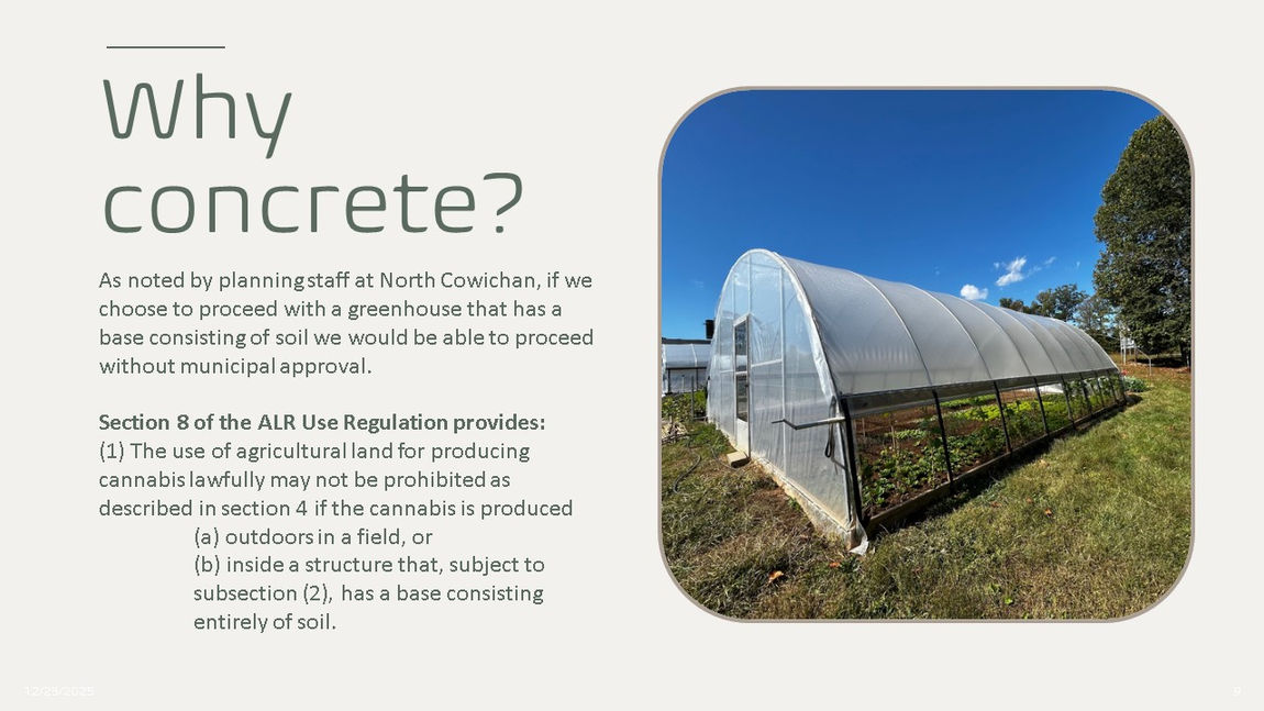 This zoning amendment step is required because non-soil-based greenhouse production is treated differently than typical field or soil-based agriculture, and we want the project reviewed clearly and transparently through the proper process. We’re choosing a concrete-based greenhouse foundation rather than a soil-based greenhouse because it supports higher-technology greenhouse options while still keeping the use fundamentally agricultural and greenhouse-based (not a warehouse).
